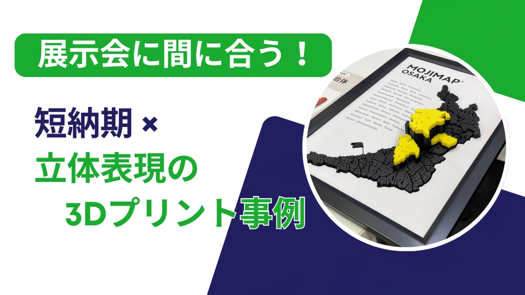 短納期で製作した展示モデルの事例をご紹介。FDM方式3Dプリンターで立体化した㈱デザイズミ様「MOJIMAP」の展示活用と仕上がりの工夫を解説。