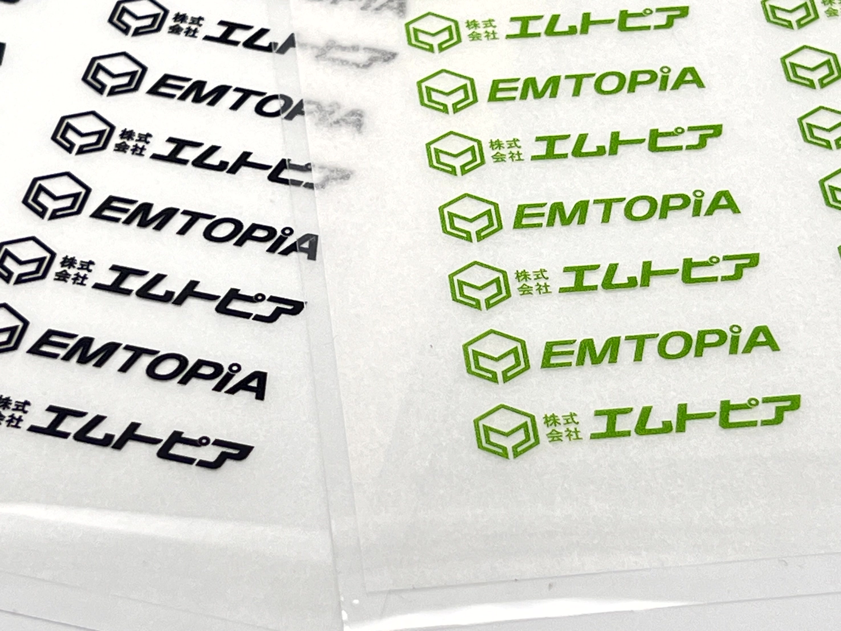 転写シートを使用して文字やロゴを貼り付ける方式です。試作段階での文字入れやマーキングに適しています。